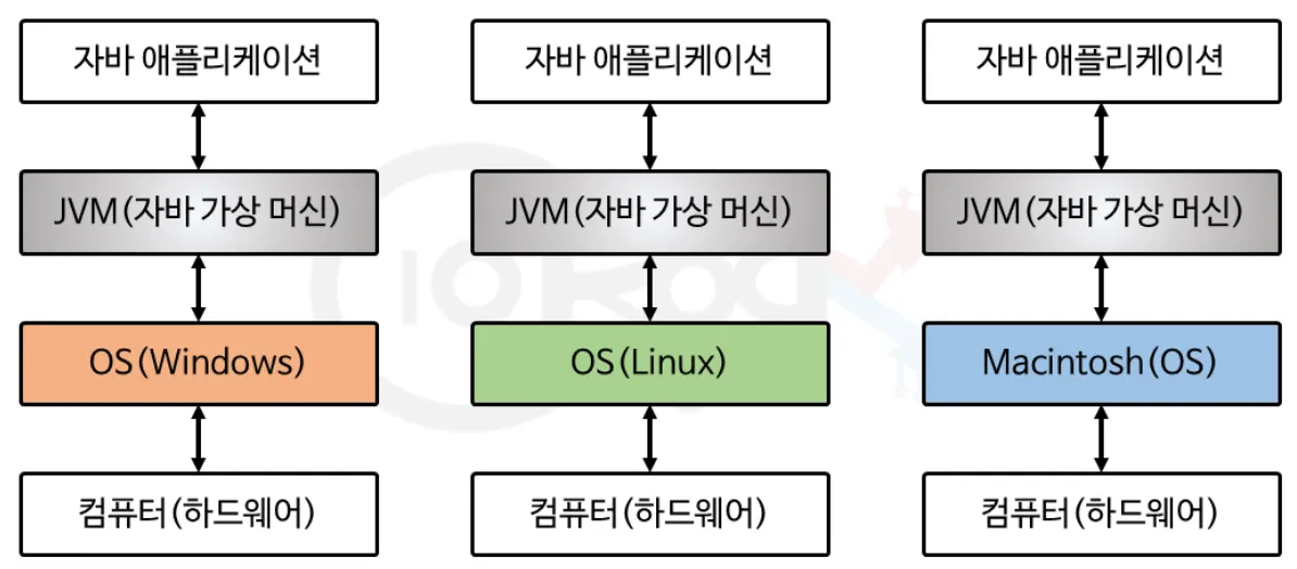 즉, JAVA는 플랫폼 종속적이지 않기 때문에, 컴파일된 바이너리 코드는 어떠한 JVM에서도 동작한다.