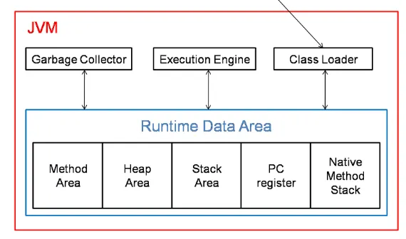 클래스 로더가 JVM 내의 런타임 데이터 영역에 바이트 코드를 배치시키고 이것은 실행 엔진에 의해 실행