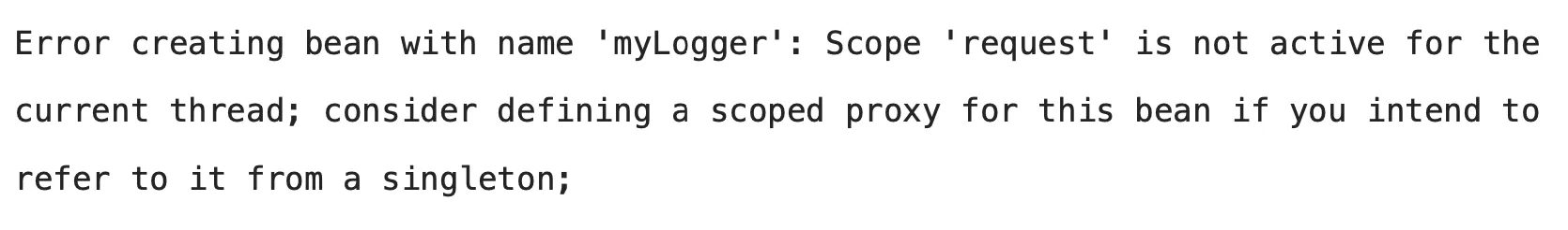 ⇒ 즉, 아직 request 요청이 오지 않았기 때문에 빈으로 등록될 수 없어서 오류를 내뱉는다!!!