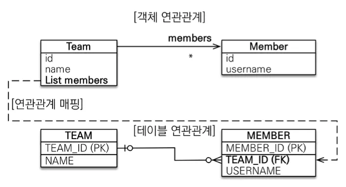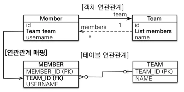 객체와 테이블의 차이 때문에 반대편 테이블의 외래 키를 관리하는 특이한 구조