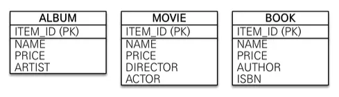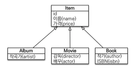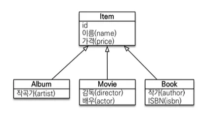 예를 들면, 앨범이라는 항목을 추가할 때 가격과 이름은 Item 테이블에 들어가고, 나머지는 Album 테이블로 Join을 통해 저장된다.