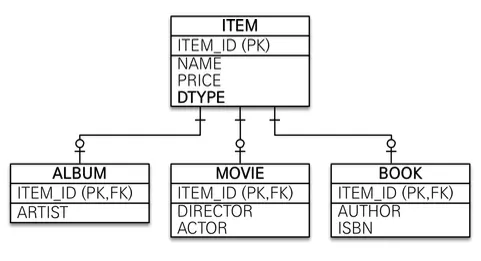 DTYPE에는 어떠한 항목(Album, Movie, Book)인지 나타냄