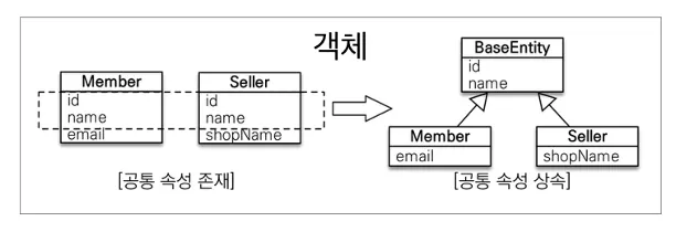 하지만 슈퍼타입-서브타입 관계라는 모델링 기법이 객체 상속과 유사하기 때문에 해당 모델링을 이용해 상속관계를 구현한다.