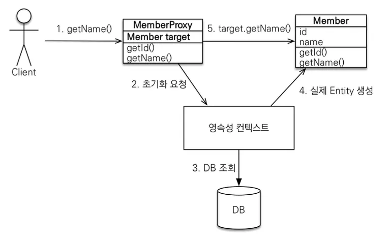 → 영속성 컨텍스트가 Proxy 객체를 관리하기 때문에, 굳이 Proxy 객체를 호출하지 않는다.