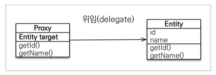 사용하는 입장에서는 진짜 객체인지 프록시 객체인지 구분하지 않고 사용하면 됨(이론상)