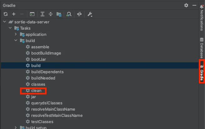 Gradle → Tasks → build → clean 실행 후 재 컴파일
