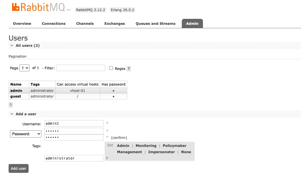 $ /opt/homebrew/sbin/rabbitmqctl set_user_tags admin administrator