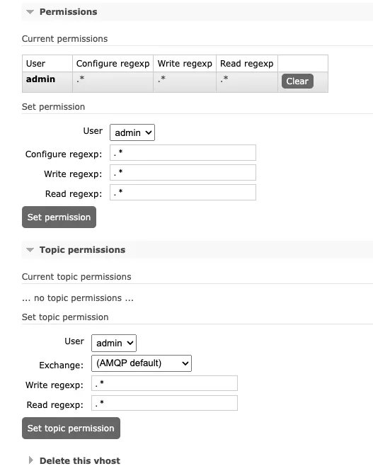 $ /opt/homebrew/sbin/rabbitmqctl set_permissions -p vhost-01 admin ".*" ".*" ".*"