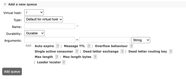 - 기본적으로는 "classic"으로 설정되며, "quorum"으로 설정하면 큐가 quorum 모드로 동작하게 됨