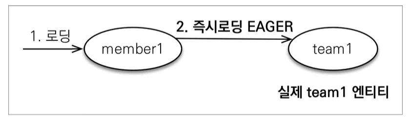 즉시 로딩은 JPQL에서 N+1 문제를 일으킨다. → 쿼리가 한번 더 나간다는 뜻